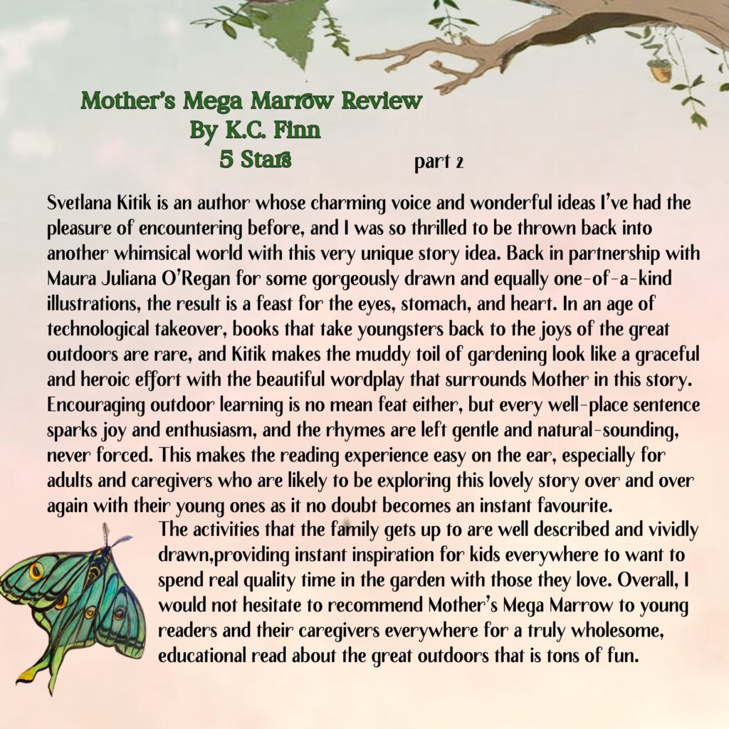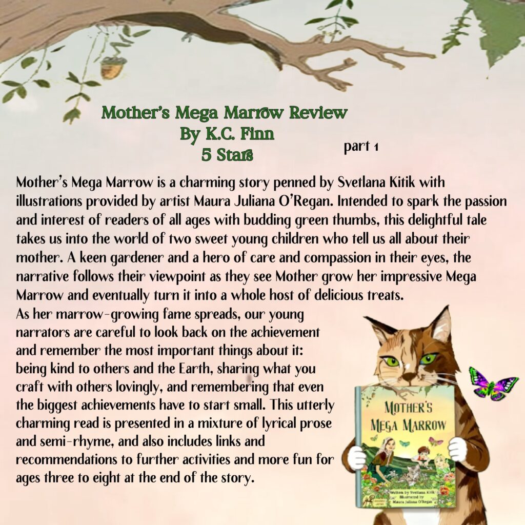 The story unfurls as the blossoming of a simple seed, and children will learn valuable life lessons about nurturing, patience, creative problem solving and the joy of sharing abundance. Mother’s Mega Marrow masterfully blends educational themes with positive values, encouraging children to connect with plants, the environment and their community.